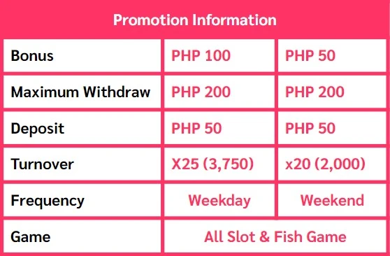 3. A deposit of PHP 50 will result in a credit of PHP 100 in the form of a bonus.