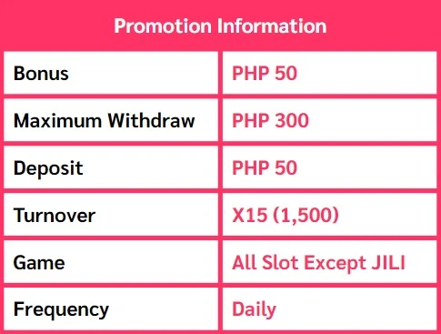 3. A deposit of PHP 50 will result in a credit of PHP 50 in the form of a bonus.
