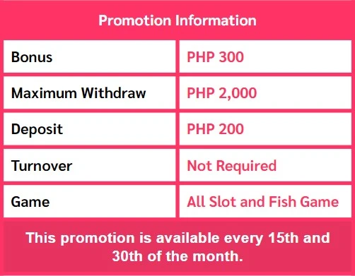 3. This promotion is exclusively valid for all slot and fish games.