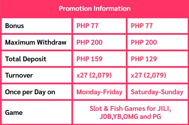 3. This promotion is exclusively valid for JILI,JDB,YB,OMG and PG