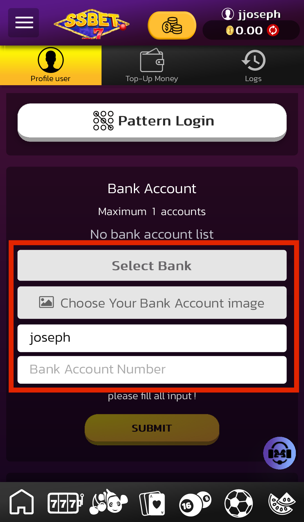 1. Kindly register an account with SSBET77.